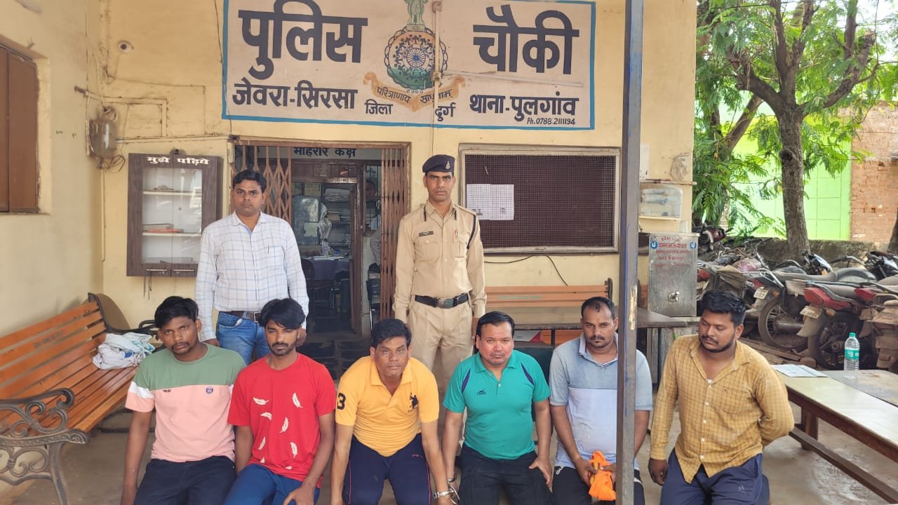 दुर्ग। चौकी जेवरा सिरसा क्षेत्र में बड़े पैनामे पर चल रहे अवैध जुआ के खिलाफ कार्यवाही पर बैंकर वैभव रमणलाल (भापुसे) के नेतृत्व में दुर्ग सिविल टीम एवं चौकी जेवरा सिरसा की संयुक्त टीम गठित की गई।चौकी को मुखबीर की सूचना मिली कि चौकी जेवरा सिरसा क्षेत्रांतर्गत समोदा नाला के किनारे तालपतरी लगाकर लाईट की व्यवस्था के साथ में कुछ लोग 52 पत्ती ताश के साथ रूपये पैसे का दांव लगाकर हारजीत का जुआ खेल रहे है। उक्त मुखबीर सूचना पर तत्काल कार्यवाही करते हुए दुर्ग सिविल टीम एवं चौकी जेवरा सिरसा की संयुक्त टीम बनाकर आईपीएस बैंकर वैभव रमणलाल नगर पुलिस अधीक्षक दुर्ग एवं एंटी टीम बोलेरो पिकअप वाहन में ताल पतरी लगाकर पहुंचे जुआ के फड़ तक पुलिस को देखकर जुआड़ी भागने लगे जिसे तत्काल घेराबंदी कर 06 आरोपियों को पकड़ा गया जिनसे ताश की 52 के साथ 41230/रू. जप्त किया गया। गिरफ्तार किये गये सभी आरोपियों के विरूद्ध छ0ग0 जुआ प्रतिषेध अधिनियम 2022 के तहत अग्रिम कार्यवाही चौकी जेवरा सिरसा से की जा रही है।