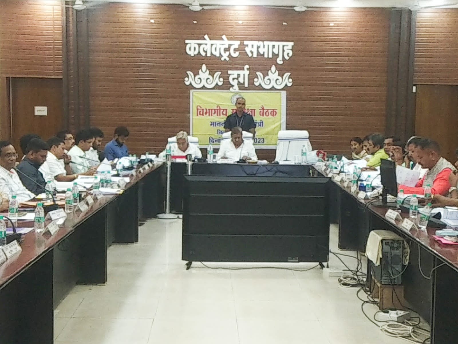 बैठक में जिले की निकायवार एमएमयू योजना, धनवन्तरी दवा दुकान, प्रधानमंत्री आवास, मोर मकान मोर चिन्हारी, मुख्यमंत्री मितान योजना, गौठान निर्माण, चारागाह विकास, सामुदायिक बाड़ी, नरवा परियोजना, गो-धन न्याय योजना, स्वच्छ भारत मिशन, राष्ट्रीय आजीविका मिशन, रीपा, राजस्व प्रकरणों के निराकरण, जिले में खाद-बीज की स्थिति, प्रधानमंत्री फसल बीमा योजना, राजीव किसान न्याय योजना, राष्ट्रीय बागवानी मिशन, सार्वजनिक वितरण प्रणाली, राष्ट्रीय पेंशन योजना, मुख्यमंत्री स्कूल जतन योजना, राष्ट्रीय स्वास्थ्य कार्यक्रम, जलजीवन मिशन, कृष्णकुंज, पौधा तुवंर दुआर, जिले में पौधरोपण सहित अन्य विभागीय योजनाओं की समीक्षा की गई।