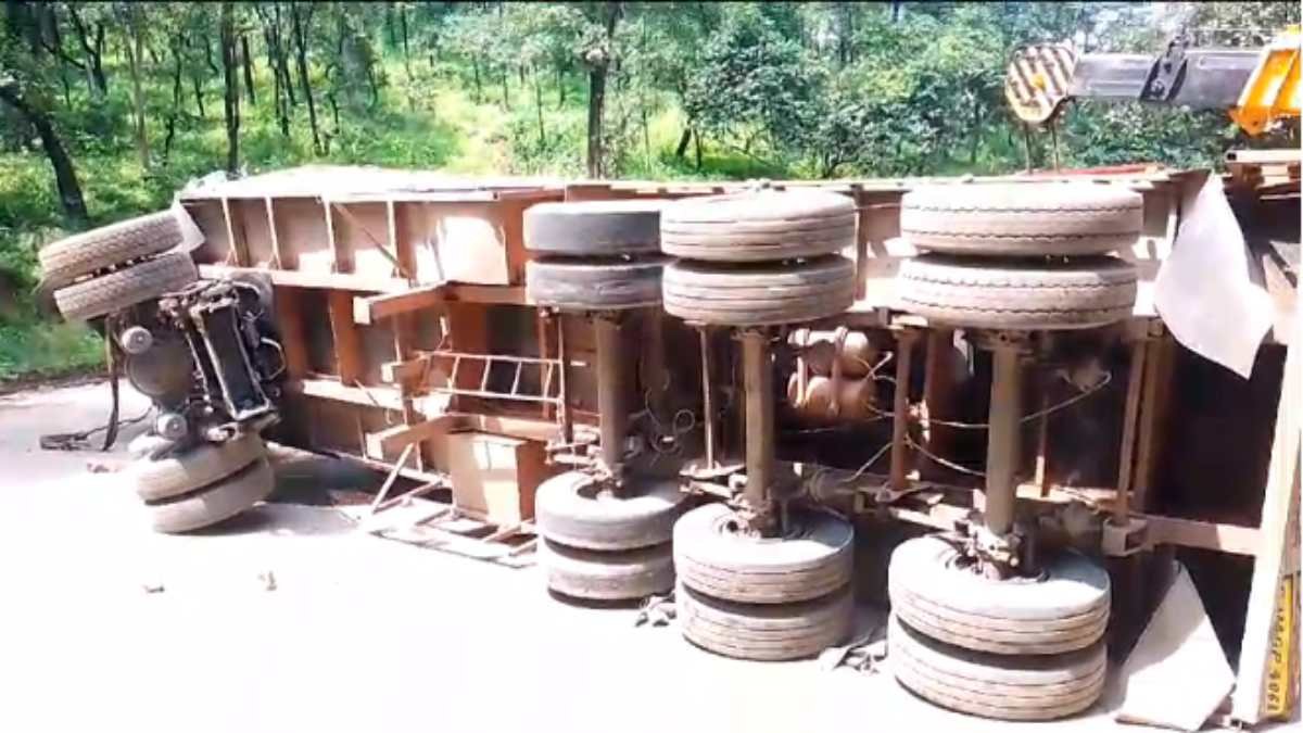 रायपुर-जबलपुर मार्ग पर पलटा ट्रेलर, चालक-परिचालक घायल, हाईवे में लगा सात किमी लंबा जाम…