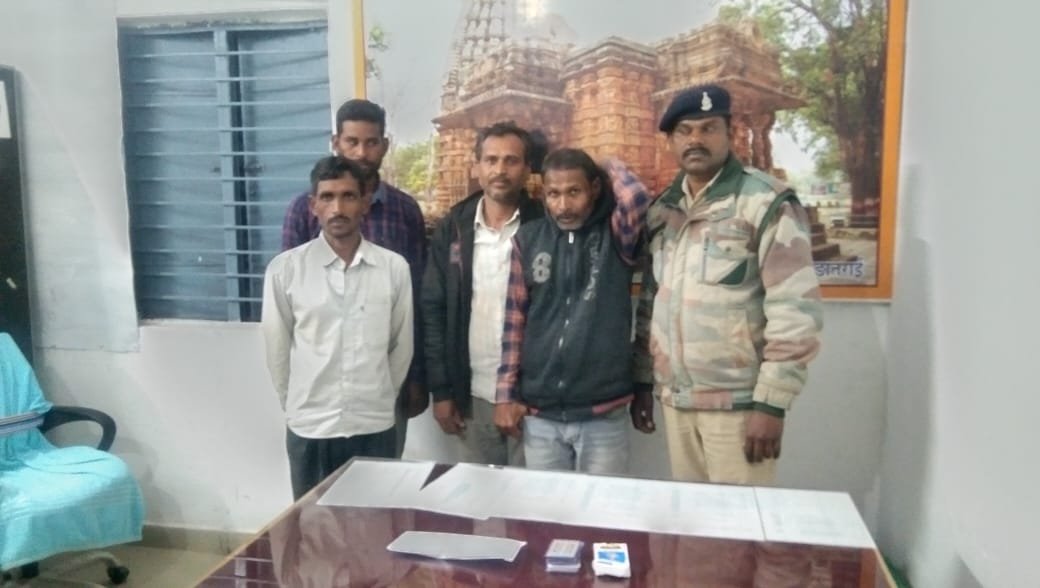 कवर्धा (पाण्डातराई) – जिले के कप्तान डॉ0 अभिषेक पल्लव के मार्गदर्शन में Asp हरीश राठौर Sdop पंकज पटेल के दिशा निर्देशन में Ti पाण्डातराई जन्मेंजय पाण्डेय के नेतृत्व में पाण्डातराई पुलिस टीम द्वारा अवैध जुआ,सट्टा एवं अवैध शराब, नशीली दवाओं व अन्य अपराधिक गतिविधियो के विरूद्ध लगातार प्रभावी कार्यवाही की जा रही है इसी क्रम मे दिनांक 02.01.2024 को मुखबीर सूचना पर ग्राम लालपुर कला में रेड कर 52 पत्ती ताश से हार जीत का दांव लगाकर जुआ खेलते हुए आरोपी 1.शिवराज साहू पिता स्व भुनेश्वर साहू उम्र 52 साल निवासी ग्राम कोयलारी कापा थाना पाण्डातराई जिला कबीरधाम 2.गया प्रसाद जांगडे पिता दुखित जांगडे उम्र 40 साल निवासी ग्राम नेऊरगांव खुर्द थाना बोडला जिला कबीरधाम, 3.मनोज कुमार टोण्डे पिता हिंछा राम टोण्डे उम्र 33 साल, 4. विष्णु जांगडे पिता उमेंद जांगडे उम्र 40 साल निवासी ग्राम लालपुर कला थाना पाण्डातराई जिला कबीरधाम के कब्जे से जुए की रकम 12580 एवम् 52 पत्ती ताश एवं प्लास्टिक की बोरी को जप्त किया जाकर जुआ प्रतिषेध अधिनियम के तहत कार्यवाही की गई है एवं इसी तारतम्य में ग्राम दशरंगपुर में आम जगह पर अवैध रूप से शराब रखकर बिक्री करते आरोपी- परमेंश्वर चंद्रवंशी पिता ईतवारी चंद्रवंशी उम्र 33 साल निवासी ग्राम दशरंगपुर थाना पाण्डातराई जिला कबीरधाम के कब्जा से 6 पौवा देशी प्लेन मदिरा एवं शराब बिक्री की नगदी रकम 300 रूपये को जप्त किया गया है आरोपीयों के विरूद्ध पृथक पृथक अपराध पंजीबद्ध कर विवेचना में लिया गया है।