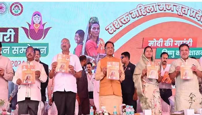 तहलका न्यूज रायपुर// मुख्यमंत्री विष्णुदेव साय ने रविवार को रायपुर के साइंस कॉलेज ग्राउंड में आयोजित महतारी वंदन योजना के राज्य स्तरीय शुभारंभ कार्यक्रम में जनसंपर्क विभाग द्वारा प्रकाशित कॉफी टेबल बुक ‘मय महतारी हंव’ का विमोचन किया। इसमें प्रदेश के अलग-अलग इलाकों की महतारी वंदन योजना की 36 लाभार्थी महिलाओं की कहानियों को संजोया गया है। इस कॉफी टेबल बुक के माध्यम से लाभार्थी महिलाओं ने महतारी वंदन योजना को लेकर अपनी आकांक्षाओं और सपनों के साथ ही योजना से मिलने वाली धनराशि के उपयोग की योजनाएं साझा की हैं।
