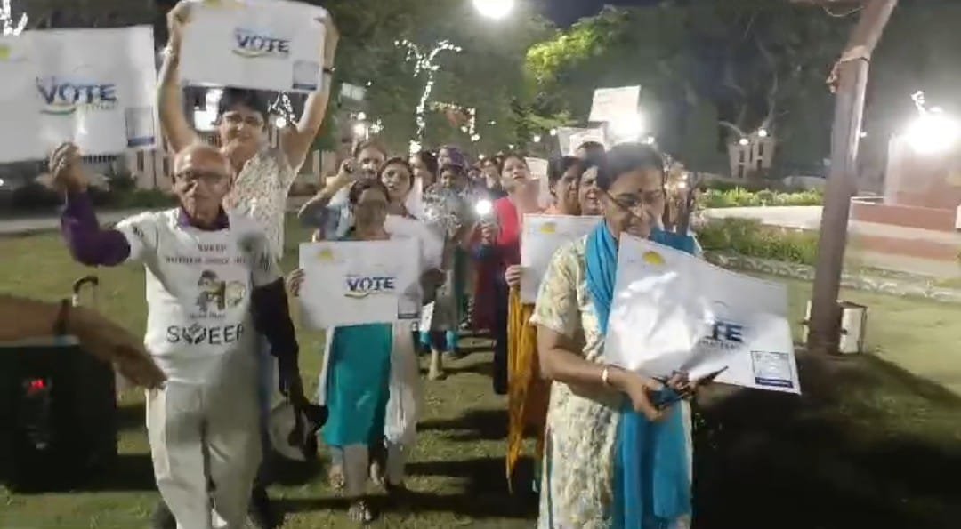 तहलका न्यूज दुर्ग// मतदाता जागरूकता अभियान के तहत सिविक सेंटर भिलाई में फ्लैश लाईट मार्च निकल कर अधिकारी कर्मचारियों ने सारे काम छोड दो सबसे पहले वोट का नारा बुलंद किये। निगम भिलाई द्वारा जिला निर्वाचन अधिकारी के निर्देश पर  स्वीप कार्यक्रम अन्तर्गत बुधवार की शाम सिविक सेंटर में एकत्र हुए  अधिकारी, कर्मचारी, समाज सेवी संस्था तथा आम नागरिकों ने अपने मोबाईल का फ्लैश लाईट जला कर रैली निकाला और लोगो को आगामी लोकसभा चुनाव के मतदान दिवस 7 मई को अपने घर से निकल कर मतदान करने की अपील किये।