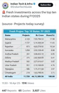 निवेश में नया मुकाम: छत्तीसगढ़ देश के टॉप-10 राज्यों में शामिल, 2025 में 1.63 लाख करोड़ का आया निवेश