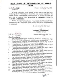 बिलासपुर हाईकोर्ट में यथावत रहेगा ग्रीष्मकालीन अवकाश, पूर्व आदेश वापस