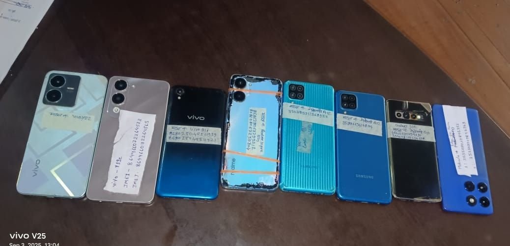 कुल 06 नग मोटरसायकिल एवं 08 नग मोबाइल फोन बरामद।