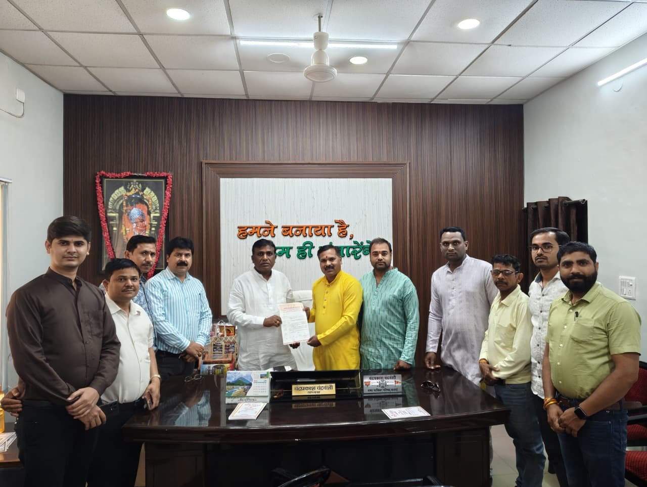 ज्ञापन सौंपने के दौरान प्रदेश अध्यक्ष आशीष दुबे, प्रदेश उपाध्यक्ष अवधेशनंदन श्रीवास्तव, जिला अध्यक्ष कुलेश्वर सिंह राजपूत, नारायण गुप्ता, बृजभूषण वर्मा, सुरेंद्र गुप्ता, मोनू सिंह ठाकुर, अंकुश विश्वकर्मा सहित अन्य सदस्य उपस्थित