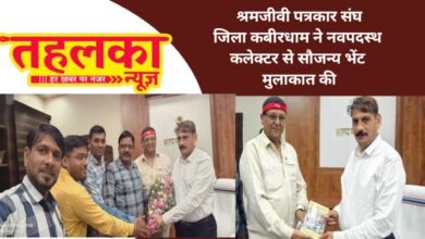 कबीरधाम कवर्धा श्रमजीवी पत्रकार संघ जिला इकाई पदाधिकारी एव सदस्यों द्वारा नवीन पदस्थ कलेक्टर गोपाल वर्मा से सौजन्य मुलाकात करते…