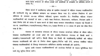 पंचायत एवं ग्रामीण विकास विभाग: महिला पंचायत पदाधिकारी के काम काज में रिस्तेदार या सगे संबंधित शासकीय कार्य में दखलअंदाजी नहीं करने का आदेश जारी….