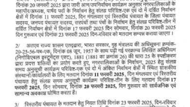 Raipur । छत्तीसगढ़ राज्य निर्वाचन आयोग ने आगामी निकाय और पंचायत चुनाव के मद्देनजर प्रदेश में 11, 17 और 20 फरवरी को सार्वजनिक…